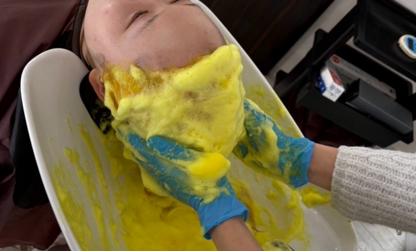 全頭ブリーチ→オンカラー(泡のカラー剤)